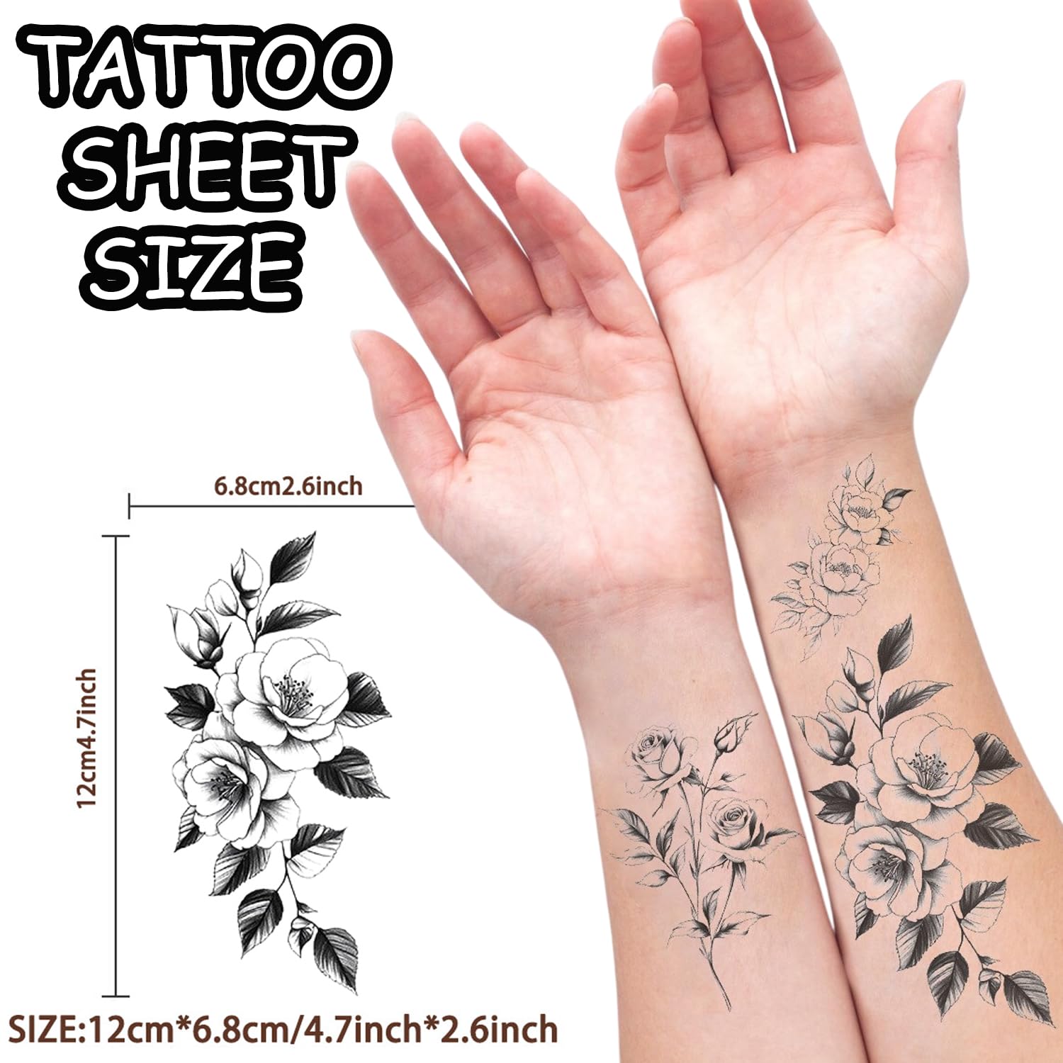 S.A.V.I 10 Sheets Black Floral Temporary Tattoos for Women & Kids | Waterproof Non-Toxic Body Art Stickers | Long-Lasting Skin-Friendly Tattoo for Arm, Wrist, Hand | Easy to Apply & Remove