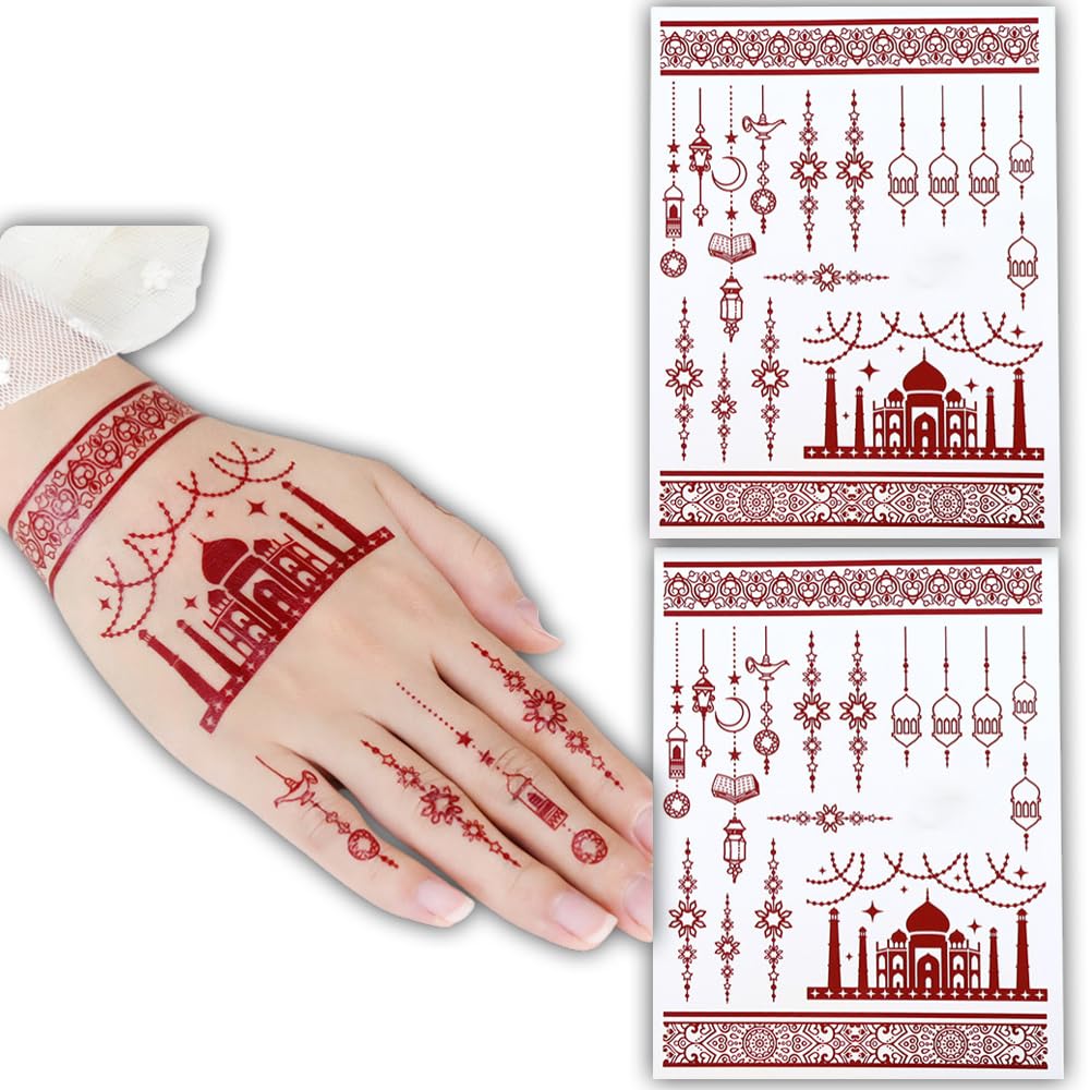 S.A.V.I 2Pcs Natural Islamic Henna Mehndi Temporary Tattoo Stickers for Women – Crescent Moon, Mosque & Mandala Design, Waterproof Skin-Safe Transfer Body Art for Eid, Nikah & Festivals (#52)