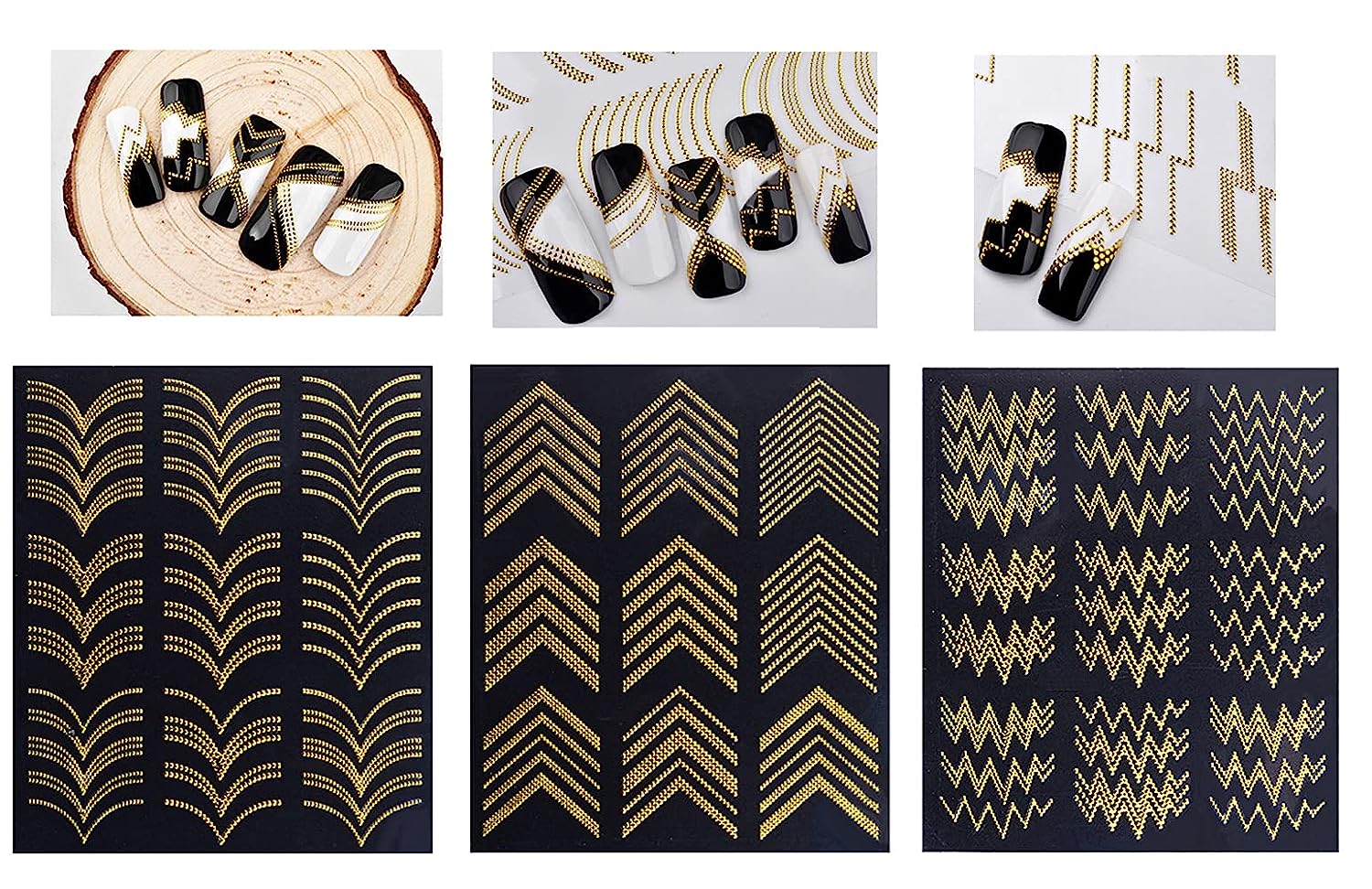 S.A.V.I 3 Sheets 3D Nail Art Tip Decoration DIY Gold Metal Self-Adhesive Wave Line Stickers Stripes For Manicure (Set-2)