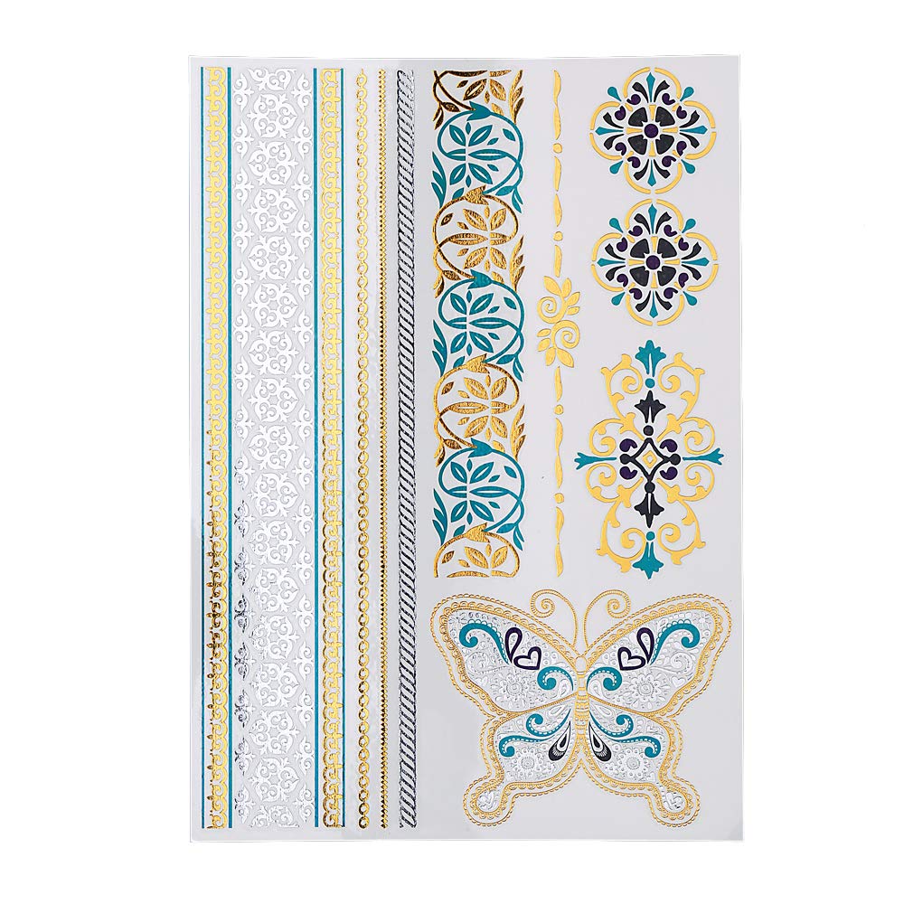 S.A.V.I 3D Temporary Tattoo Golden and Silver Metallic Sticker Big Butterfly Hair Tattoo Decoration Design Size 21x15cm - 1pc. (109), Gold, 22 g