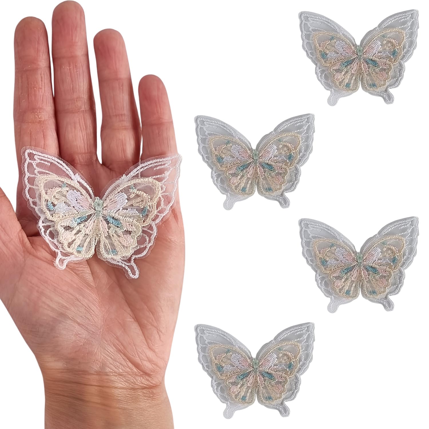 S.A.V.I 4PCs 3D Butterfly Lace Applique Patch – 2.5x1.9 inch Embroidered Mesh Fabric for DIY Sewing, Bridal Wear, Saree, Lehenga, Blouse, Gown Craft Projects – Multicolor Elegant Design (Multicolor-3)