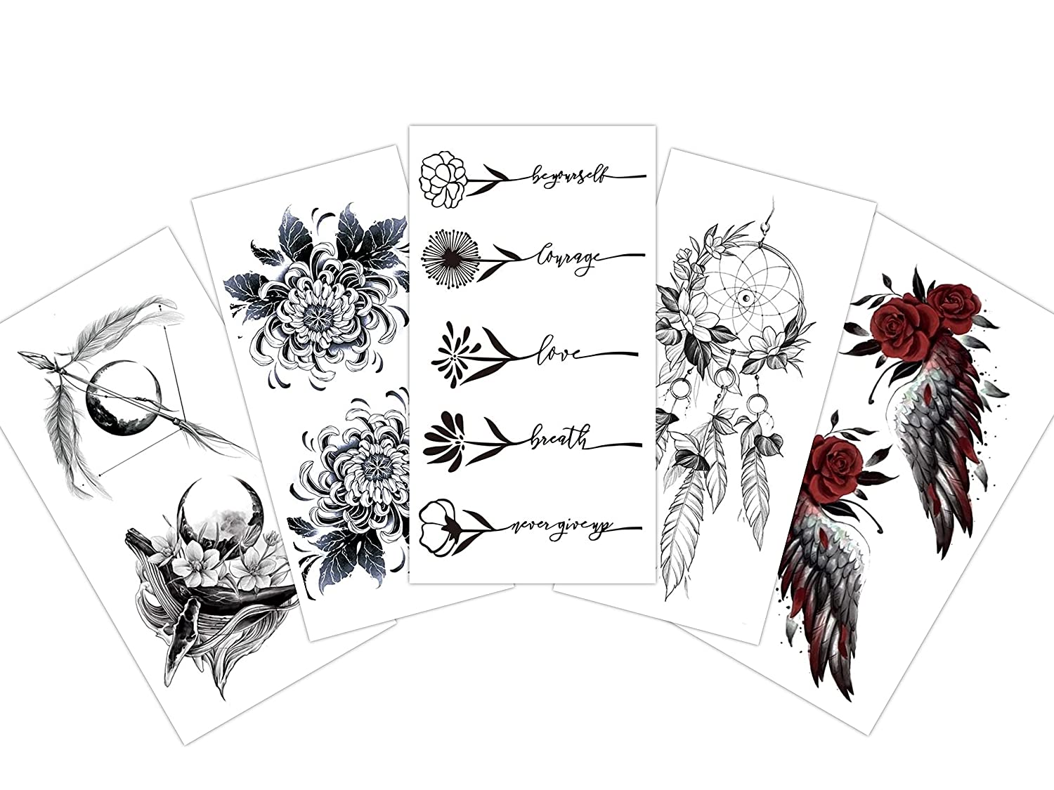 Specifications: Item: Tattoo Stickers Material: Imported AB glue + environmental protection ink Color ; Pattern: As picture Quantity: 10 sheets Size:;As mentioned in the title Package Included: 10 PCS. Tattoo Stickers How to Use:1. Decide where you want to apply the Tattoo. Make sure your skin is clean, oil-free and dry.1.2. Remove the transparent sheet and place the Tattoo on your skin face down.2.3. Wet the back of the tattoo with a wet towel or sponge, press and wait for 60 seconds.3.4. Carefully remove the paper to check if it has transferred. If not, press a little longer. Don;t twist or stretch the skin until;the tattoo has set.4.How to Remove: Simply soak the tattoo with body oil, olive oil or alcohol for a few minutes, then gently scrub off.