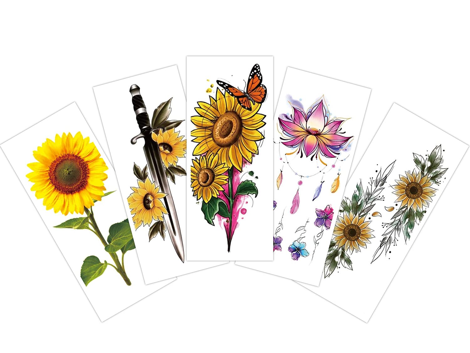 - 5PCS. - 3D Colorful Sunflowers Temporary Tattoo Stickers, Size - 10.5x6 CM