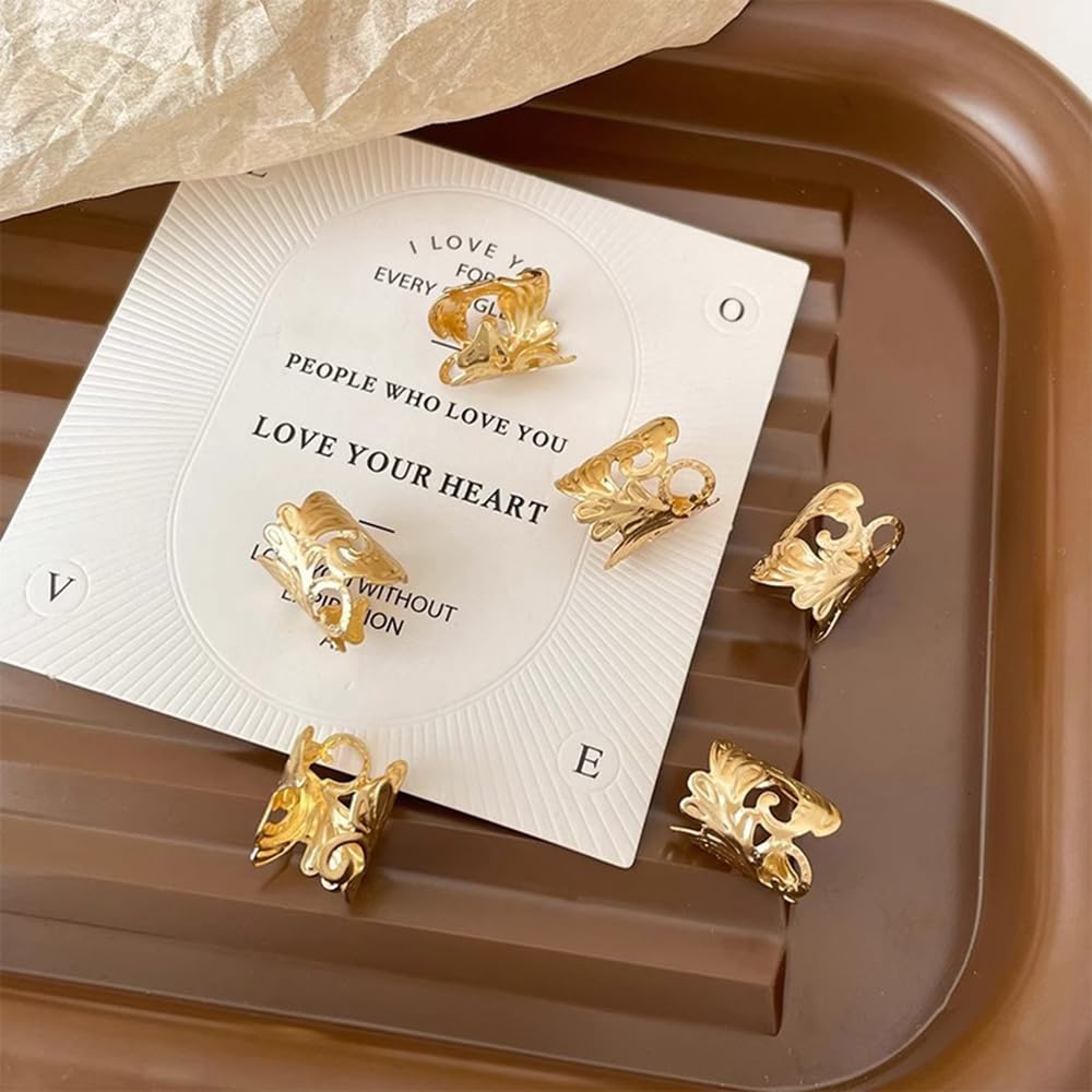 S.A.V.I 6 Pcs Gold Plated Hair Ring Clips for Women | 16x12mm Leaf Design Metal Cuffs for Braids, Dreadlocks & Party Hairstyles | Stylish Hair Accessories for Girls & Women