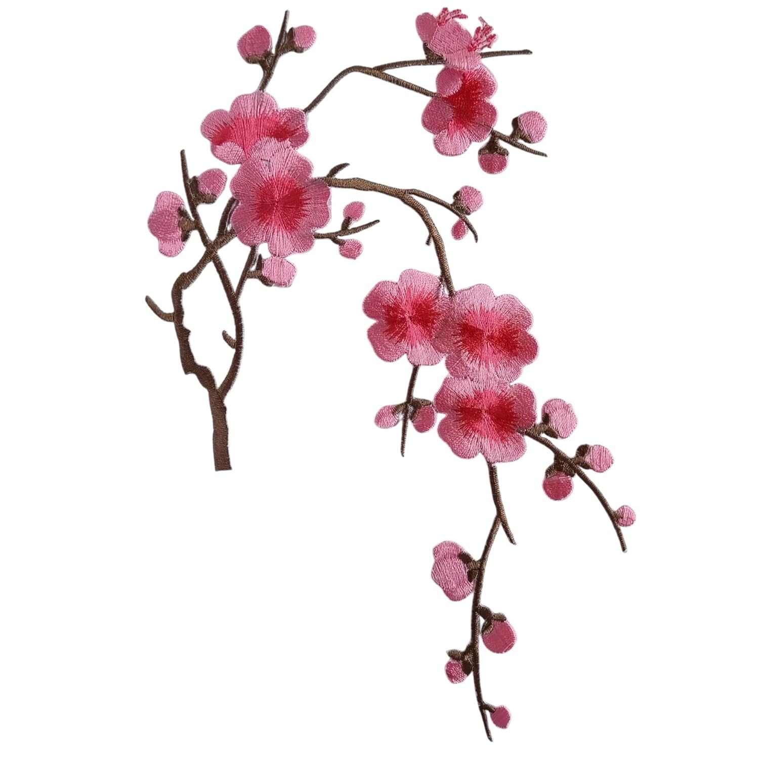 S.A.V.I Cherry Blossom Embroidered Patch – 3D Iron-On/Sew-On Applique for T-Shirts, Jeans, Jackets, Backpacks – Pink Floral Fabric Badge (8.4x6.3 in) – DIY Heat Press Patch for Clothes Accessories (Pink-left side)
