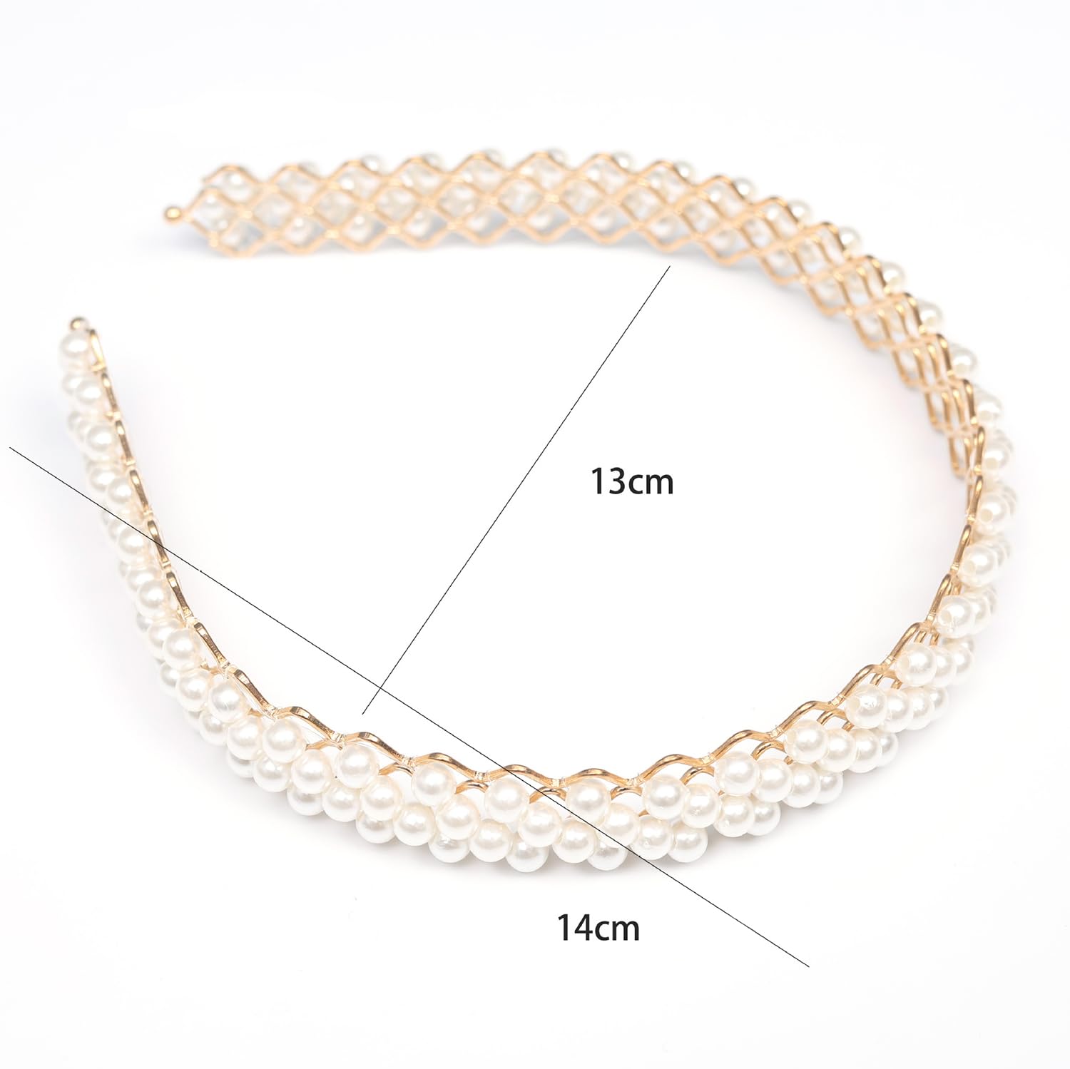 S.A.V.I Gold Plated Pearl Headband for Women & Girls | 14cm Elegant White Faux Pearl Hairband | Stylish Zigzag Metal Design | Party, Wedding, Ethnic Hair Accessory